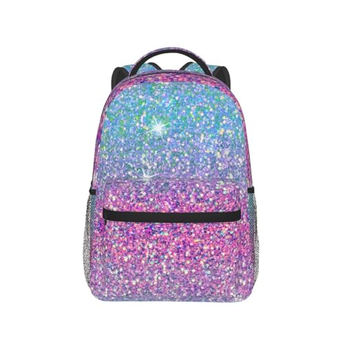 Pink Blue Ombre Glitters Backpack Large Capacity Lightweight Casual Travel Sports Backpack 11.4X7.8X15.7 inch 6