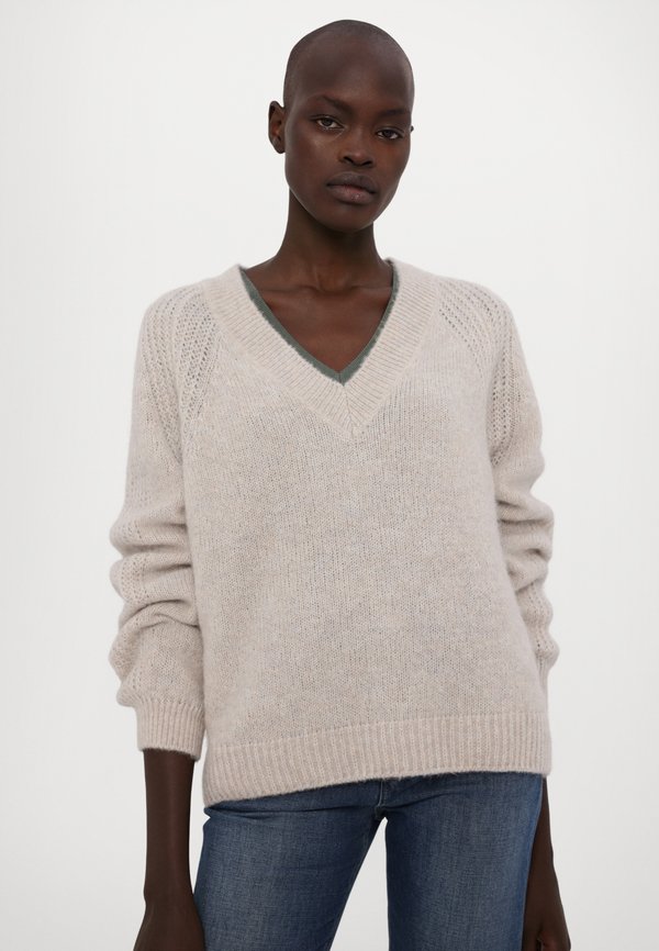 V NECK LONG SLEEVE - Jumper - stone beige 8