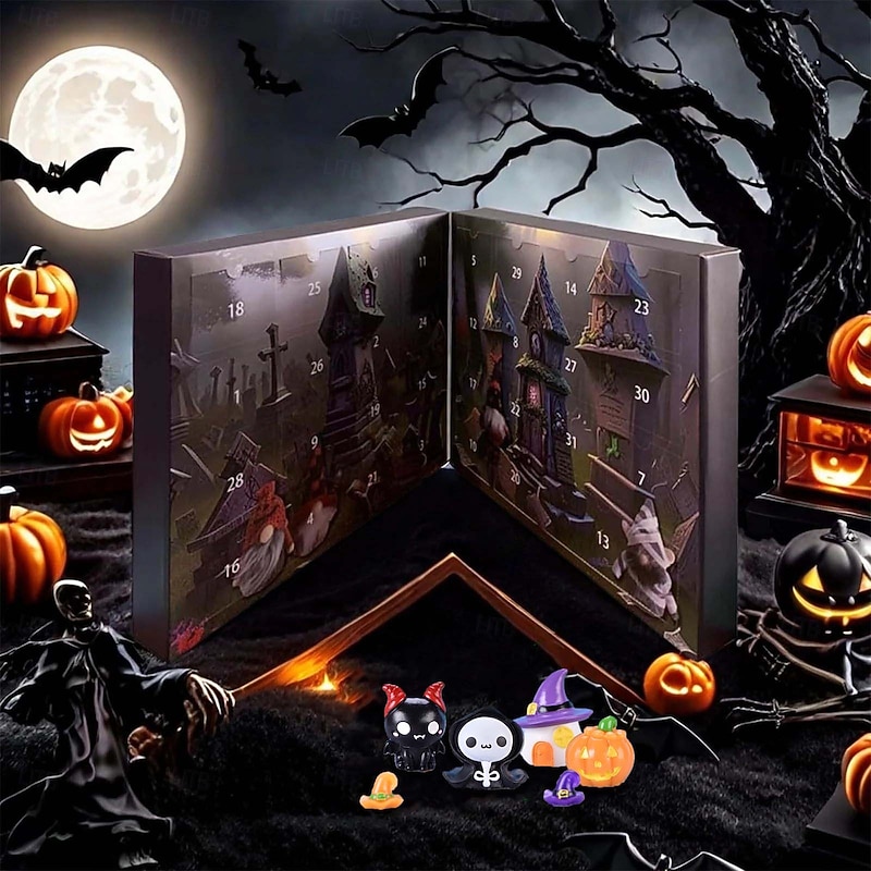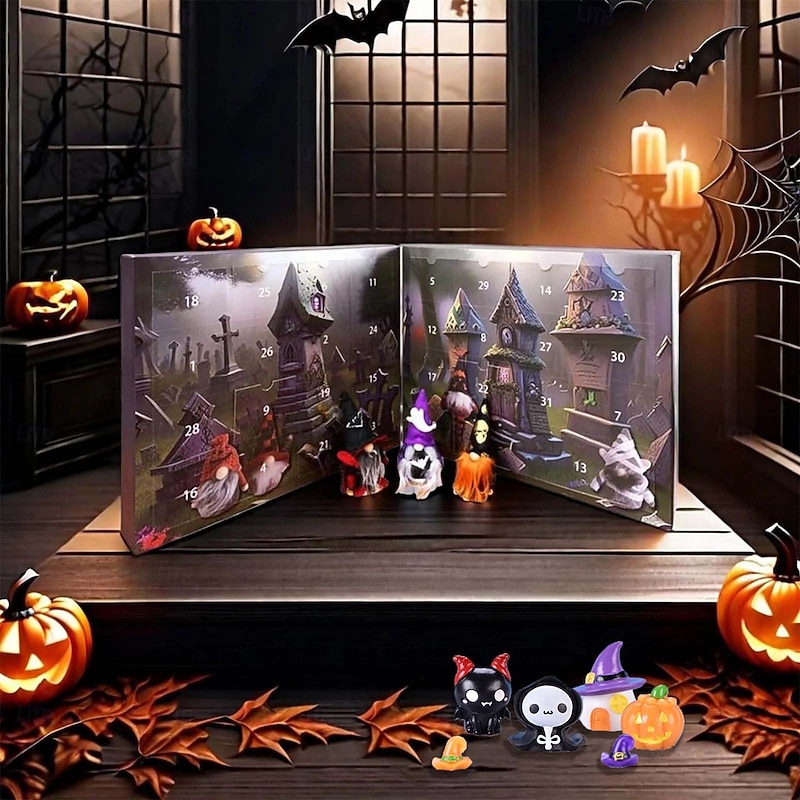 HOT ! Halloween Gnome Advent Calendar, Halloween Countdown Calendar, Decoration for Aldults Kids Holiday Halloween Christmas Gifts (3pcs Gnome Doll + 28pcs Resin Mini Figurine Per Box)