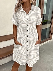 More information about Women's Mini Dress Shirt Dress Casual Dress Print Dress Fashion Modern Daily Beach Weekend Regular Fit Geometric Short Sleeve Shirt Collar White Summer Spring Fall Autumn