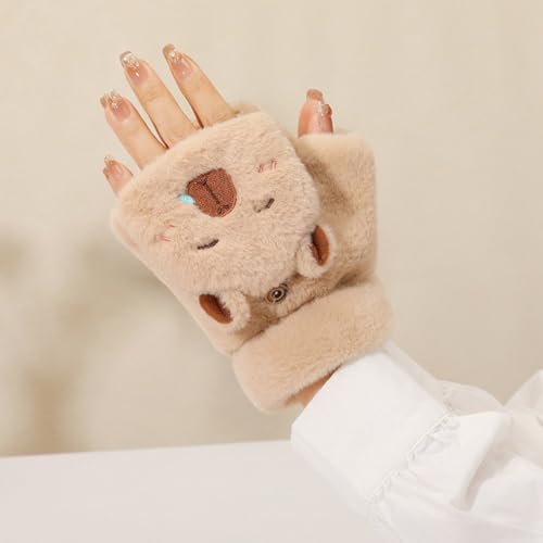 Capybara Plush Gloves Cute Kids Winter Gloves Flip Cover Touchscreen Half Finger Mittens Outdoor Windproof Warm Glove for Girls 7