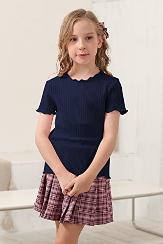GORLYA 2 Pack Girls Lettuce Trim Basic Solid Tee Shirts Ribbed Knit Casual Blouse Tops for 4-14T 4