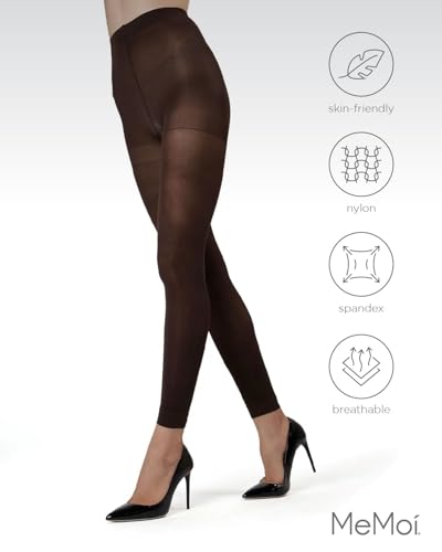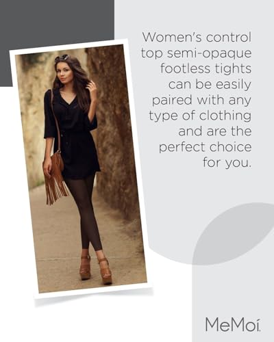 MeMoi Control Top Footless Tights, Smoothing Semi Opaque Tights for Women - Sizes Small to Queen 2 3