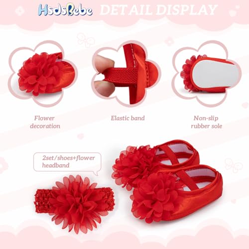 More information about HsdsBebe 2pcs/Set Newborn Baby Girl Princess Mary Jane Shoes Toddler Infant Wedding Dress Flat Shoes with Free Headband