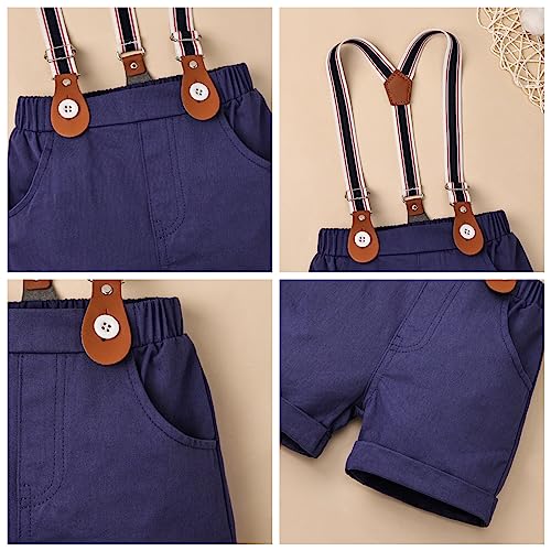 Baby Boy Clothes Gentleman Outfits Infant Baby Bodysuit Shirt with Bowtie Suspender Shorts Baby Boy Suit Set 0-18M 5