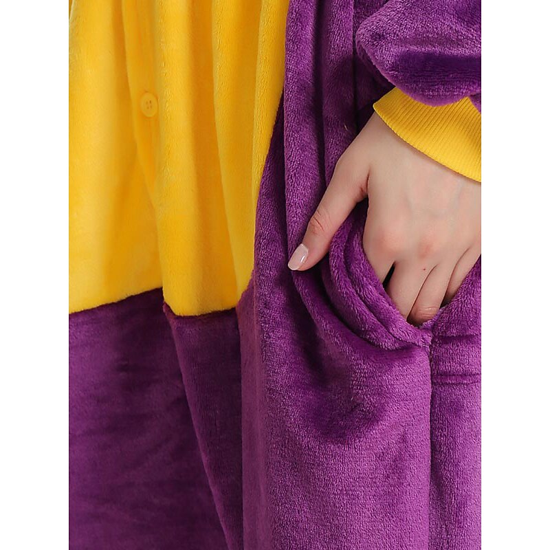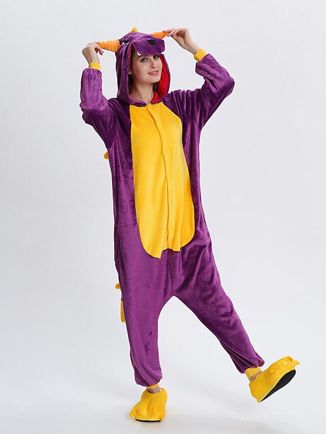 Highlights [Fabric] : Crafted from high-quality flannelette, this onesie offers a plush, soft texture that ensures warmth and comfort for cozy lounging or festive gatherings. The material enhances the onesie's snug feel, making it ideal for cooler weather or relaxed indoor fun. [Fit] : Designed with a loose-fitting, baggy style, this dragon onesie provides ample space for comfortable movement. The relaxed fit is perfect for both men and women, ensuring a cozy and unrestricted experience whether you’re at a party or relaxing at home. [Design Highlights] : This vibrant purple onesie features contrasting yellow accents and is adorned with detailed elements such as a dragon-faced hood complete with eyes and ears. The inclusion of a tail and padded, claw-like attachments on the feet adds an extra layer of playful character. A front zipper allows for easy dressing and removal, adding practical simplicity to its whimsical design. [Occasions] : Perfect for carnival festivities, costume parties, or simply adding a whimsical twist to a casual day at home. This onesie costume brings a humorous and charming flair to any gathering, making it an excellent choice for a lighthearted and fun-filled event. [Size Notice] : Available in a range of sizes from S to XL, catering to a wide variety of body types and ensuring a comfortable fit for all adults. This inclusive size range allows everyone to enjoy the cozy and playful design of this dragon onesie.