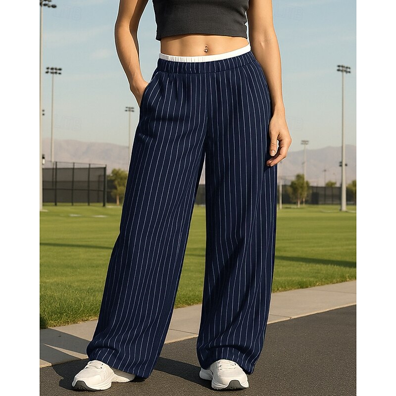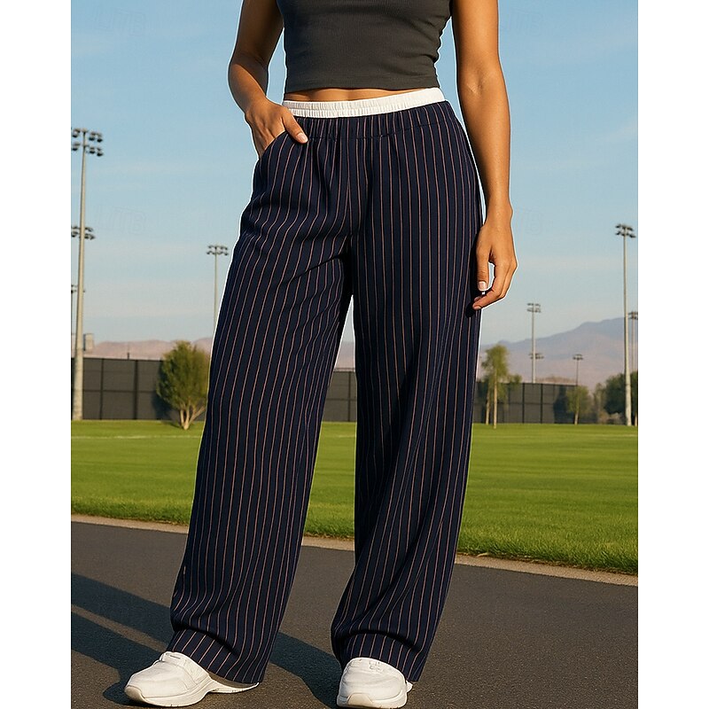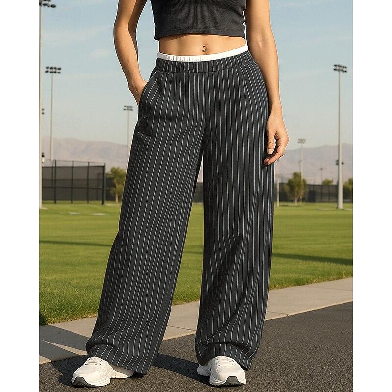 $22.99 - Women's Wide Leg Pants Casual Pants Pocket High Waist Bottoms Athleisure Gym Workout Fall Fashion Outdoor Travel Loose Fit Sportswear Activewear Stripes Black White Burgundy 2025. Shop for cheap Running Pants & Tights online? Buy at lightinthebox.com on sale today!