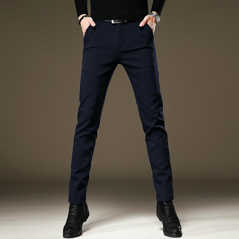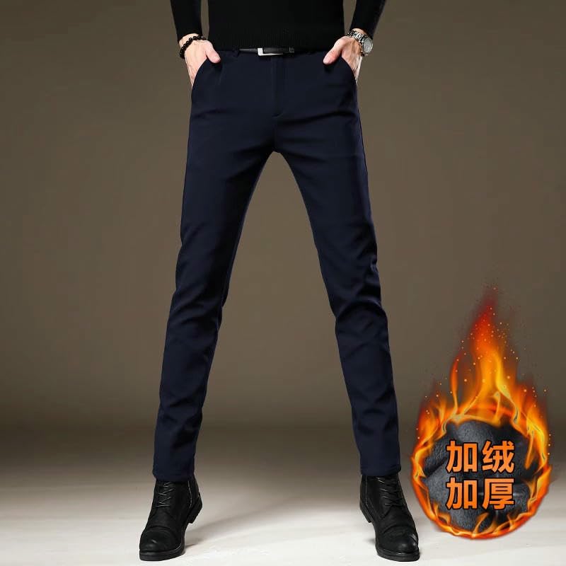 HOT ! Men's Autumn Winter Korean Style Drape Business Slim Elastic Fleece Lined Black Casual Pants
