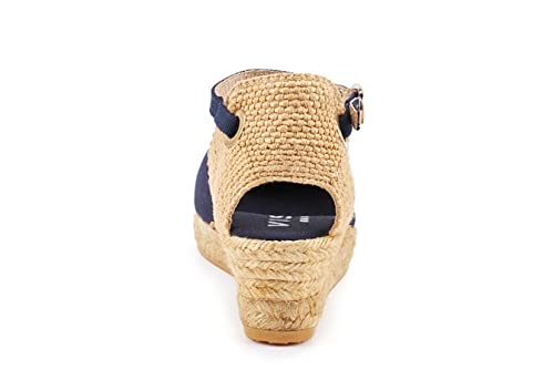 • Handmade with love: With superior craftsmanship and extra padded comfort, these women's shoes are made of breathable cotton 100% organic canvas certified GOTS and 100% natural jute midsole. Lovingly handcrafted in Spain. Espadrille wedge shoes for easy walking: 1 ½ inch heel and ½ platform. Attractive v-shaped vamp. Closed toe espadrille wedge.