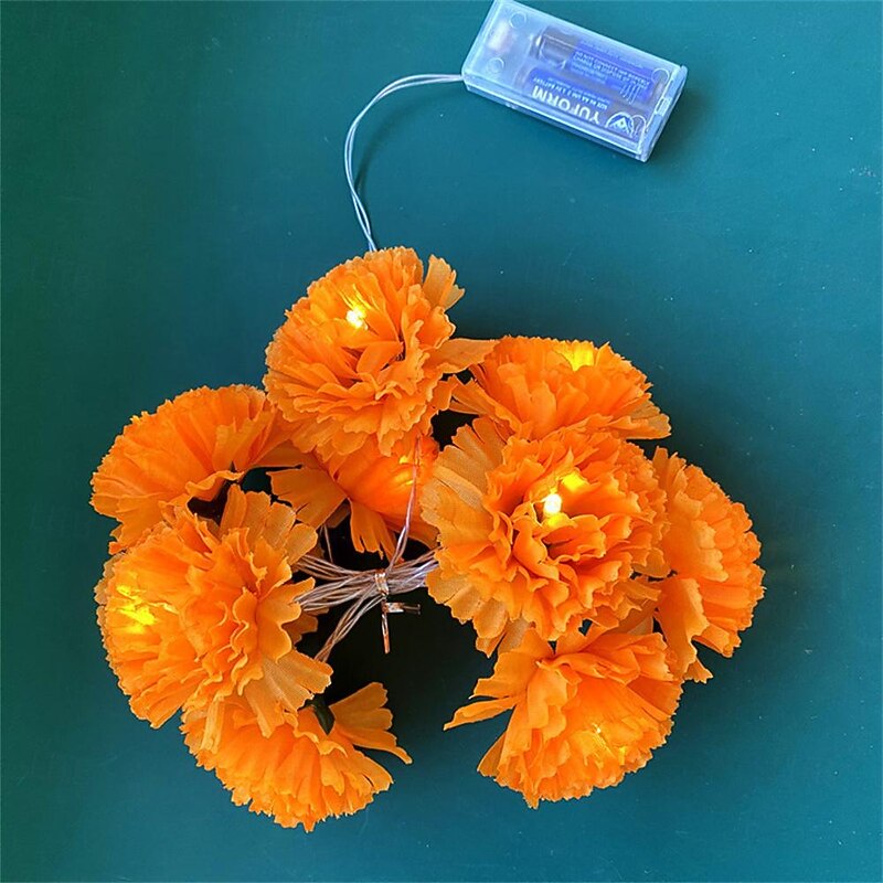 Elegant Wedding Reception Party 10LED Marigold Garland String Lights Battery Operated 1.5M/3M for Day of the Dead Home Decor 7