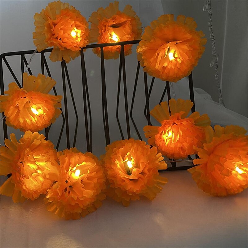 Elegant Wedding Reception Party 10LED Marigold Garland String Lights Battery Operated 1.5M/3M for Day of the Dead Home Decor 1