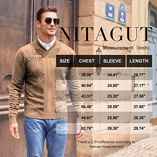 HOT ! NITAGUT Mens Shawl Collar Pullover Sweater Slim Fit Sweater Cable Knit Pullover V Neck Soft Casual Button Sweater for Man