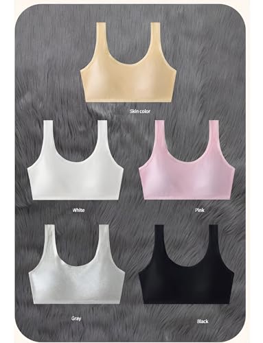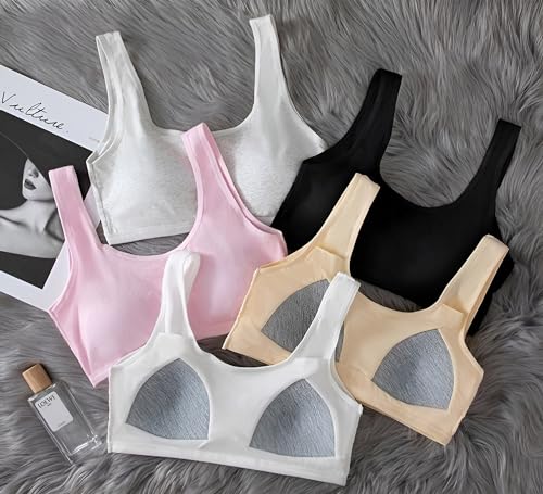 5Pack Big Girls Padded Training Bras,Girls Thin Cotton Breathable Sports Bra Fit 4