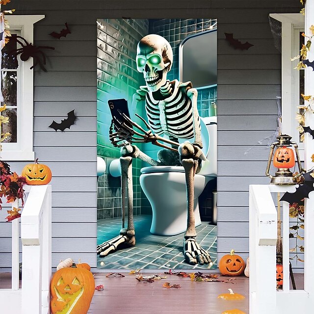 $18.99 - Funny Skeleton Halloween Door Cover for Bathroom Indoor Outdoor – Glow-in-the-Dark Toilet Sitting Skeleton Curtain for Spooky Party Decoration 2025. Shop for cheap Halloween Door Covers online? Buy at lightinthebox.com on sale today!