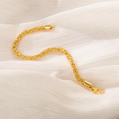 • 【Signature Byzantin Chain】Crafted with finesse, this slender dainty gold bracelet adorned in 14k gold plated . The intricate Byzantine design of gold bracelets for mens bracelet, with meticulously polished links interwoven, epitomizes timeless allure. Striking the exquisite balance between subtlety and grandeur, this sleek yet substantial gold bracelet exudes effortless style.