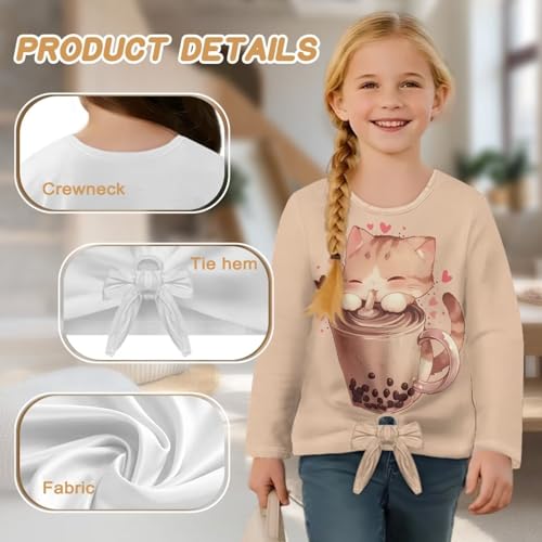 Girls Shirts Long Sleeve Tie Front Knot Shirt Size 5-12 5