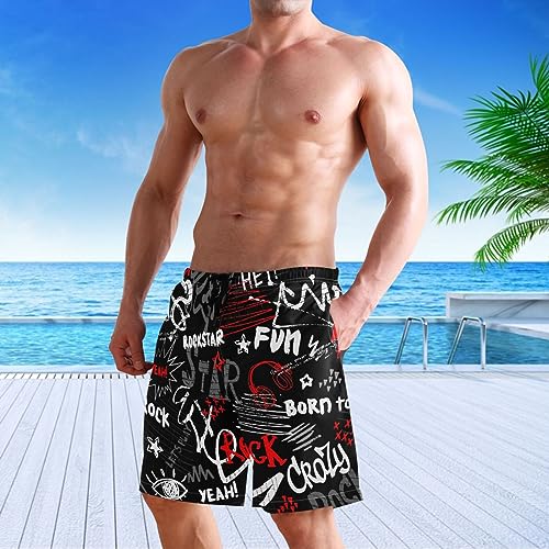 visesunny Men's Swim Trunks Headphone Spray Paint Words Rock Star Quick Dry Bathing Suits Beach Swim Shorts 5