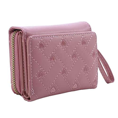 sought-after ! Wallets for Women Tri-folded Compact PU Leather Wallet Embroidered Heart Small Wallet Credit Card Holders Coin Purse Cute Zipper Purses Slim Short Wallet for Women Girl,Pink