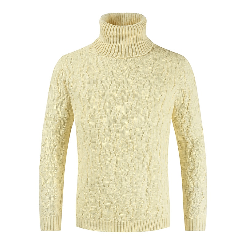 HOT ! Men's Turtleneck Sweater Pullover Sweater Jumper Fall Sweater Jumper Cable Crochet Knit Regular Knitted Plain Turtleneck Modern Contemporary Work Daily Wear Clothing Apparel Winter White Yellow S M L