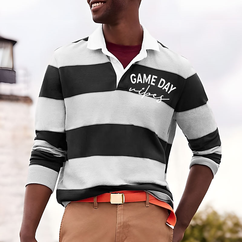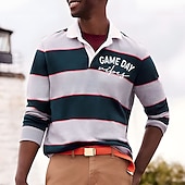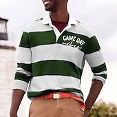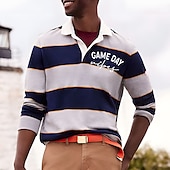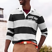More information about Men's Stripe Letter Rugby Polo Golf Polos Shirts Long Sleeve Polo Shirts Turndown Casual Outdoor Casual Daily Streetwear 3D Print Fall & Winter Black Dark Navy Blue