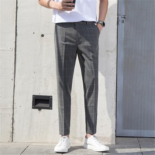 HOT ! Mens Stripe Slim Fit Stretch Suit Pants Mens Slim Fit Business Golf Pants Men Lightweight Causal Plaid Pant