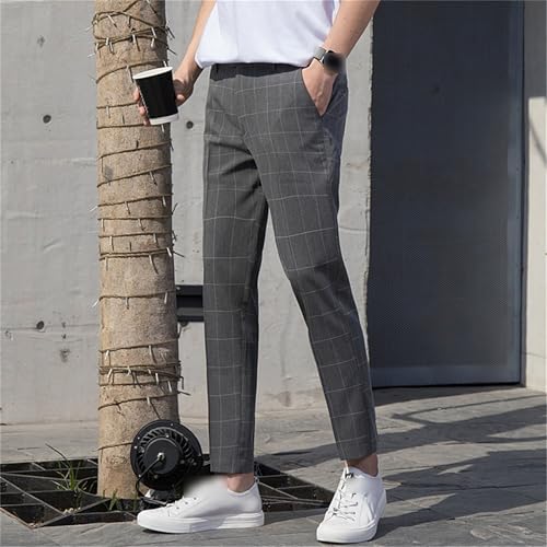 Mens Stripe Slim Fit Stretch Suit Pants Mens Slim Fit Business Golf Pants Men Lightweight Causal Plaid Pant 6