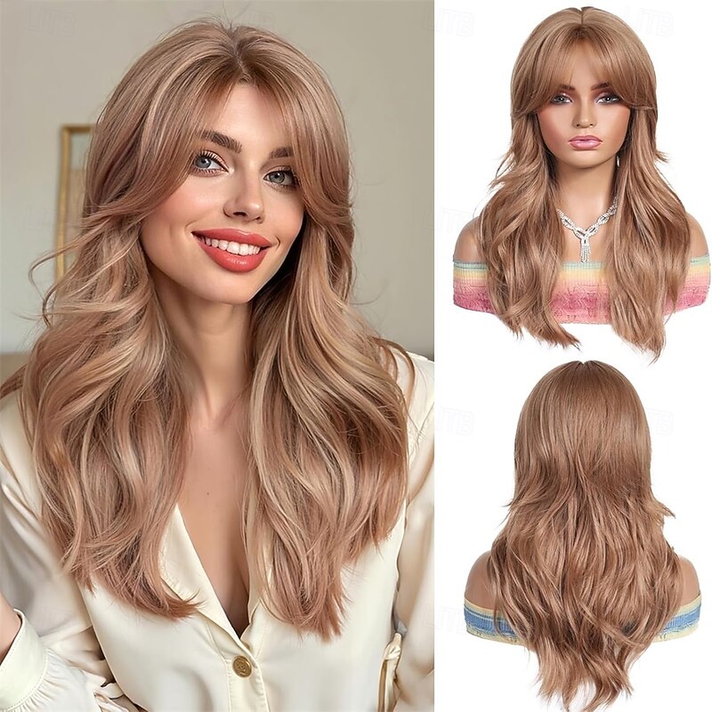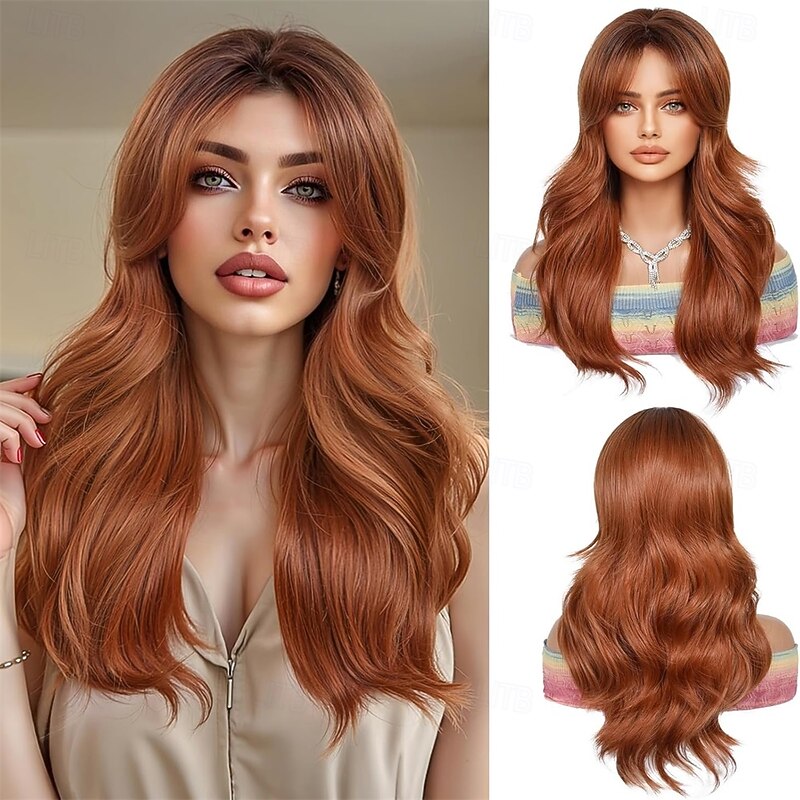 $28.99 - Ombre Brown Wig for Women with Curtain Bangs Medium Length Natural Curly Synthetic Hair Heat Resistant Wigs for Daily Party Cosplay Wear 2025. Shop for cheap Synthetic Trendy Wigs online? Buy at lightinthebox.com on sale today!