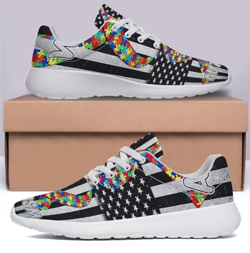 HOT ! Sonzj-II Autism Awareness Shoes Mens Womens Walking Tennis Running Shoes Comfortable Athletic Sneakers