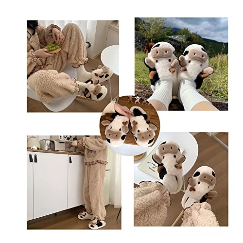 HOT ! Fluffy Cow Slippers, Kawaii Cozy Fuzzy Animal Slippers, Winter Cute Cartoon Plush Cow Shoes For Women