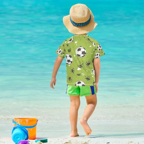 Boys Short Sleeve T-Shirts Green Soccer Ball Rashguard Kids Swim Shirts Sun UPF 50+ 2