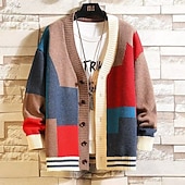 sought-after ! Men's Geometric Color Block Cardigan Sweater Knitwear V Neck Casual School Vacation Daily Patchwork 3D Print Keep cozy Long Sleeve Spring Fall Winter Red Blue