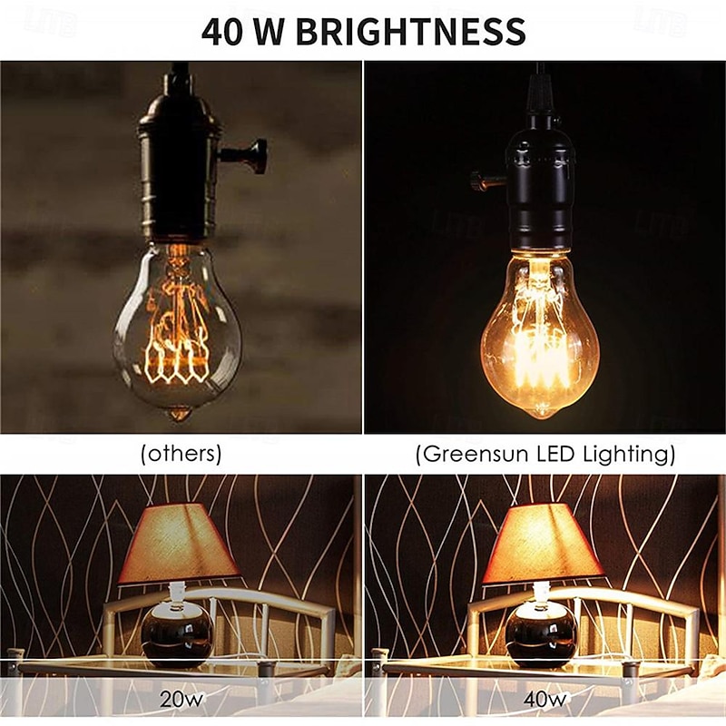 6pcs Edison Vintage Classics Incandescent Light Bulb Dimmable A19 40W E27 Decorative Bulbs for Wall Sconces Ceiling Light 220-240V 4