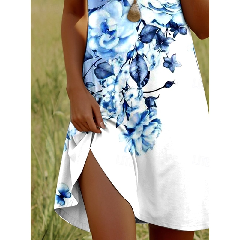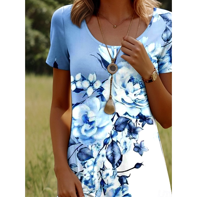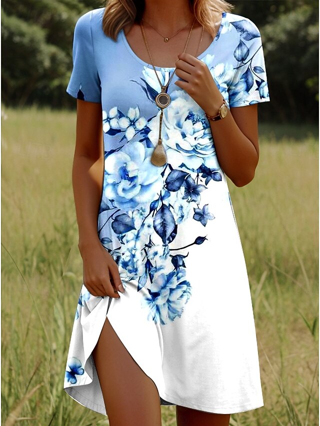 More information about Women's Mini Dress Casual Dress T Shirt Dress Tee Dress Sundress A Line Dress Stylish Casual Beach Regular Fit Ombre Floral Graphic Short Sleeve Crew Neck Scoop Neck Dusty Blue Light Blue Summer