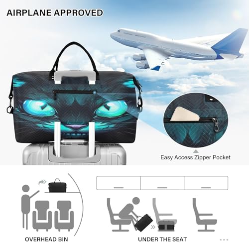 HOT ! Kigai Wild Cat Blue Eyes Duffle Bag Versatile Travel Duffel for Men and Women, Carry On for Weekend or Overnight Stay