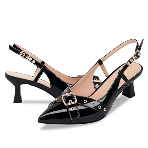 Women’s Pointed Toe Slingback Pumps – Fashionable Buckle & Studded Design Mid Heel Dress Shoes for Party Wedding Work 6