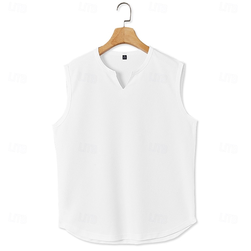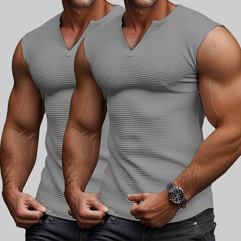 More information about 2 Piece Men's Waffle Tank Top Tank Top Vest Undershirt Sleeveless V Neck Summer Plain Fashion Sporty Classic Basic Street Casual Sports White Blue Top Tee for Men