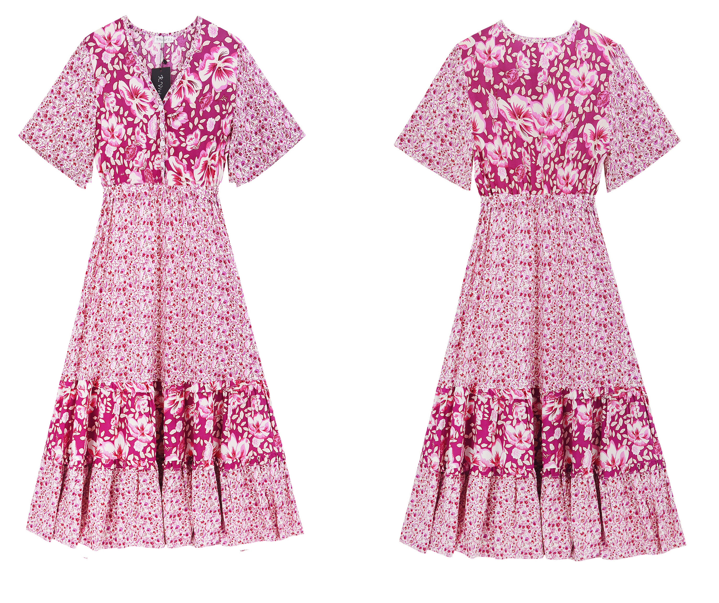 R.Vivimos Women's Summer V Neck Boho Floral Print Midi Dress