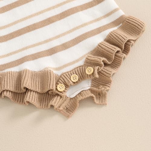 • DesignBaby girl sleeveless ruffle romper, knit overalls baby girl, baby sweater romper, Sleeveless, straps, flower/striped pattern, ruffle trim, loose fit, basic length.Baby girl summer romper, bottom button closure, easy to change diapers