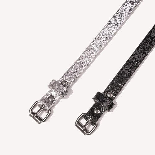 Blingbling Waist Belt Sequined Buckle for Street Dance Jean Belt Punk Waist Chain Shimmering Glitters, Black and Silver, 100*1.4cm 1