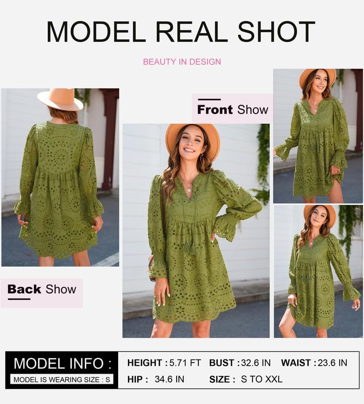 • Design:Eyelet Dress/Midi Dress/Lace Embroidery Dress/Embroidered Dress/Fall Dress/Party Dresses For Wedding Guest/ Casual Dress/Tassel V Neck/Short Dress For Women/Long Sleeve Dress