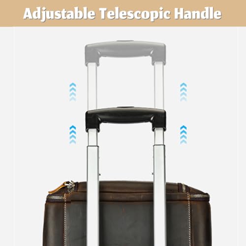 Men's Leather Duffle Bag with Wheels,Rolling Travel Luggage with Handle,Large Convertible Garment Weekender Bags