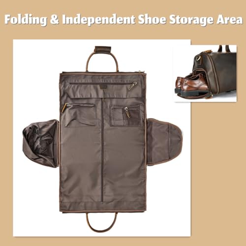 Spacious & Large Capacity:Rolling travel luggage is measuring 23.23*12.6*9.45 inch,capacity fits clothes, shoes, and essentials for business trips, gym sessions, or weekend vacations,solid bag combines style and resilience, maintaining a sleek, high-end experience wherever your journey takes youWrinkle-Free Garment Storage:Unfold the travel bag to access a dedicated hanging garment compartment, designed to keep your clothes neatly stored for the entire trip,compartmentalized design allows for easy organization and quick access to your belongingsAdjustable Telescopic Handle:Equipped with easy-pull retractable handle and padded shoulder strap, it can be used as a tote bag, crossbody bag, or wheeled luggage for a variety of travel needsDurable:Crafted from leather,duffle bag is both water- and tear-resistant, designed to endure the demands of travel while safeguarding your belongings,heavy-duty zippers, reinforced corners, and water-resistant lining protect your belongings during travelBusiness & Leisure:Sleek professional design of duffle bag for travel meets functionality, suitable for flights, road trips, camping, or gym use,whether you're looking for a convertible travel garment bag, a weekend bag, a travel bag, an overnight bag, or a rolling bag, the multi-functional travel rolling bag will meet your needs Perfect for everyday use. first-class materials and excellent craftsmanship ensure long-lasting durability.