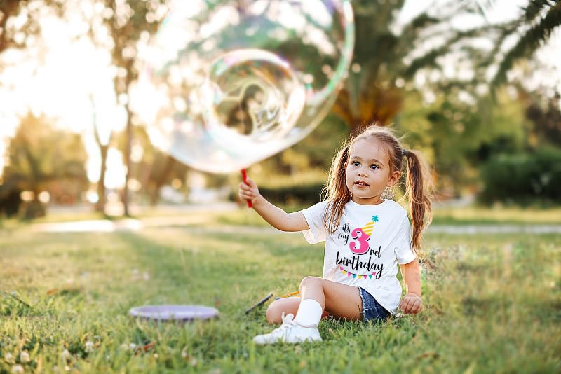 • 3th birthday party outfit --- This 3-year-old girl's T-shirt is specially designed for birthdays, with a beautiful 3th birthday banner in white shirt, fashion and personality. It is not only suitable as a birthday gift for 3-year-old girls, but can also be worn as a birthday party outfit, cute declaration of growing up