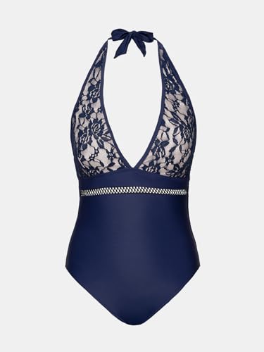 • Design: Embrace beach elegance with this one piece swimsuit, featuring a plunging V-neckline and halter tie straps for adjustable fit. Delicate lace floral detailing at the bust adds a romantic touch, while a row of cutouts beneath the bust brings allure to this feminine silhouette.