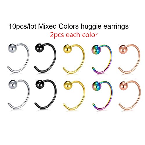 5pairs Mixed colors Ball Huggie Earrings hoop Cartilage Tragus Earrings 316L Stainless Steel Black Silver Gold Small Hoop Earrings 5