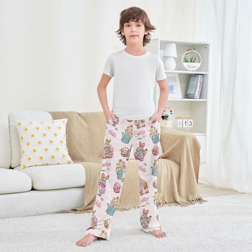 Easter Gnome Egg Floral Boys Long Pants Soft Trousers Elastic Waist Kids Lounge Bottoms with Pockets S-XL 4