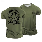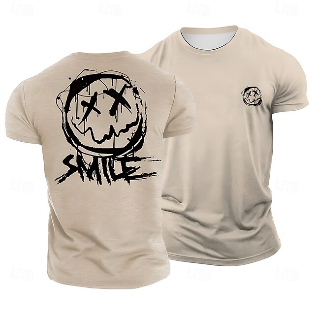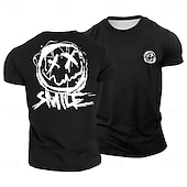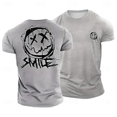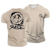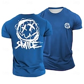 sought-after ! Men's Distressed X-Eyes Smiley Face 'SMILE' Graphic T-Shirt, Blue Casual Streetwear Short Sleeve