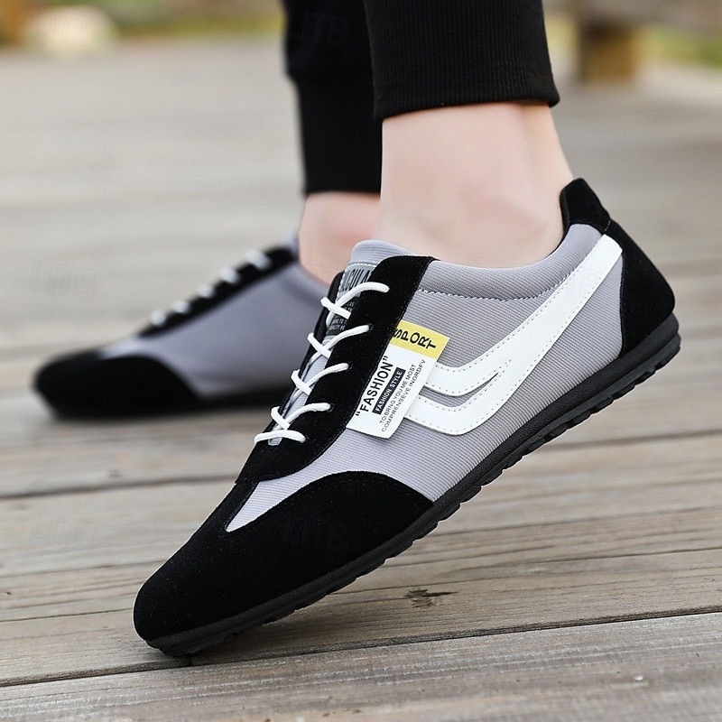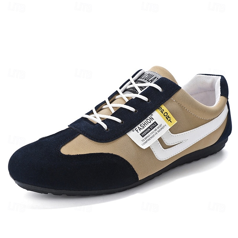 HOT ! Men's Casual Beige and White Sneakers – Breathable Nylon Lace-Up Shoes for Relaxed Outings and Casual Occasions
