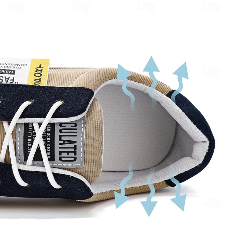 More information about Men's Casual Beige and White Sneakers – Breathable Nylon Lace-Up Shoes for Relaxed Outings and Casual Occasions