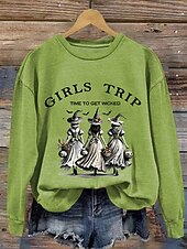 More information about Halloween Women's Sweatshirts Witch Graphic Letter Casual Long Sleeve Crew Neck Regular Tops Street Dailywear Casual Print White Orange Green Fall Winter